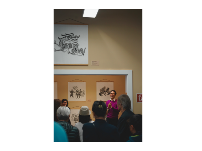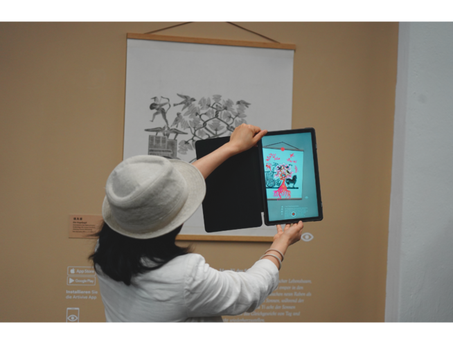 Mit Hilfe von Augmented Reality (AR) schafft die deutsch-chinesische Künstlerin Yi Meng Wu einen Brückenschlag in die digitale Gegenwart. Sie haucht den historischen Szenen neues Leben ein, indem sie die Darstellungen in Linolschnitte übersetzt und zu farbenprächtigen digitalen Animationen weiterentwickelt. Diese können über ein Smartphone nach dem kostenlosen Download der ARTIVIVE-App abgespielt werden.