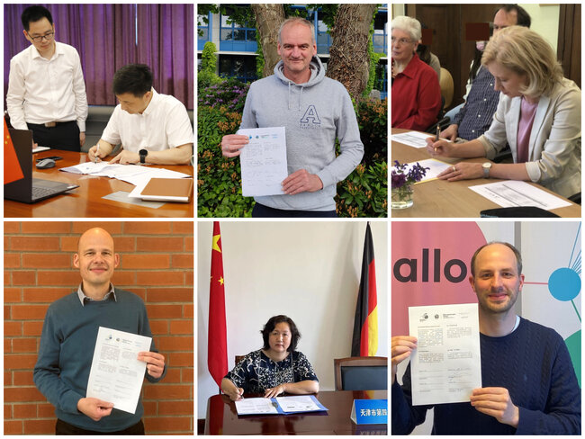 Im Rahmen von zwei Live-Schaltungen unterzeichneten die Projektpartner am Montag die Kooperationsvereinbarung, darunter Henning Harnisch, Vizepräsident Jugend bei ALBA BERLIN, Caspar Welbergen, Geschäftsführer des Bildungsnetzwerks China, sowie Frau Shi Yongmei, die Schulleiterin der Tianjin No. 42 High School und Schulleiter Herr Koven vom Barnim-Gymnasium.