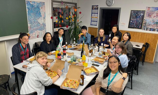 Am Vorabend der Austauschakademie kam unser Akademieteam zu einem gemeinsamen Pizzaessen in Waldenburg (Sachsen) zusammen, um die Ankunft der 36 Teilnehmenden aus Deutschland und China am nächsten Tag zu planen. Im 500km entfernten Kyllburg (Rheinland-Pfalz) fand währenddessen bereits der Start des parallelen Formats unserer Einsteigerakademie China statt, auf der 48 Teilnehmende während der kommenden Woche China besser durch seine Politik, Wirtschaft, Kultur, Geschichte und Sprache kennenlernen.